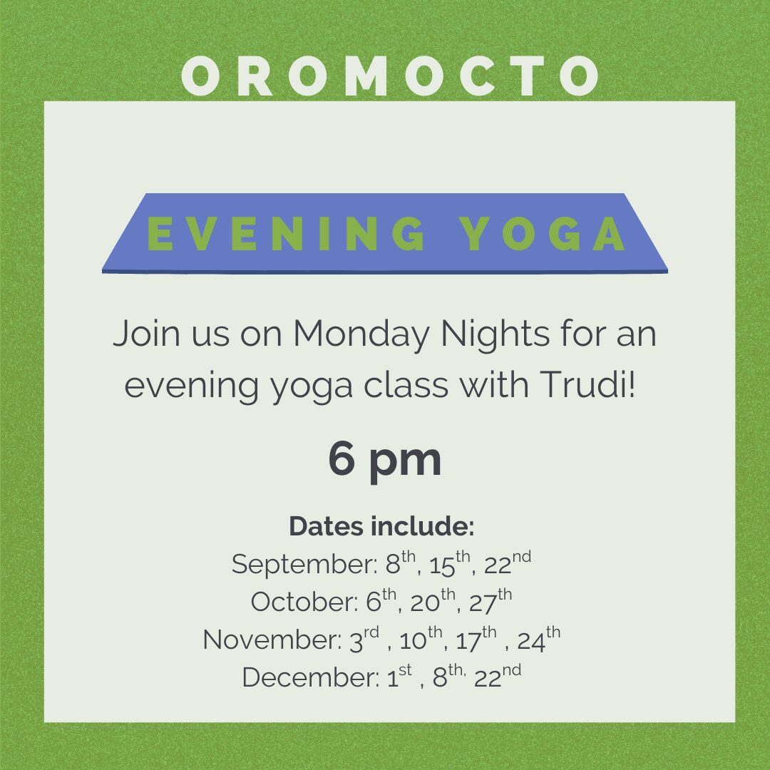 Join us on Monday Nights for an evening yoga class with Trudi!
