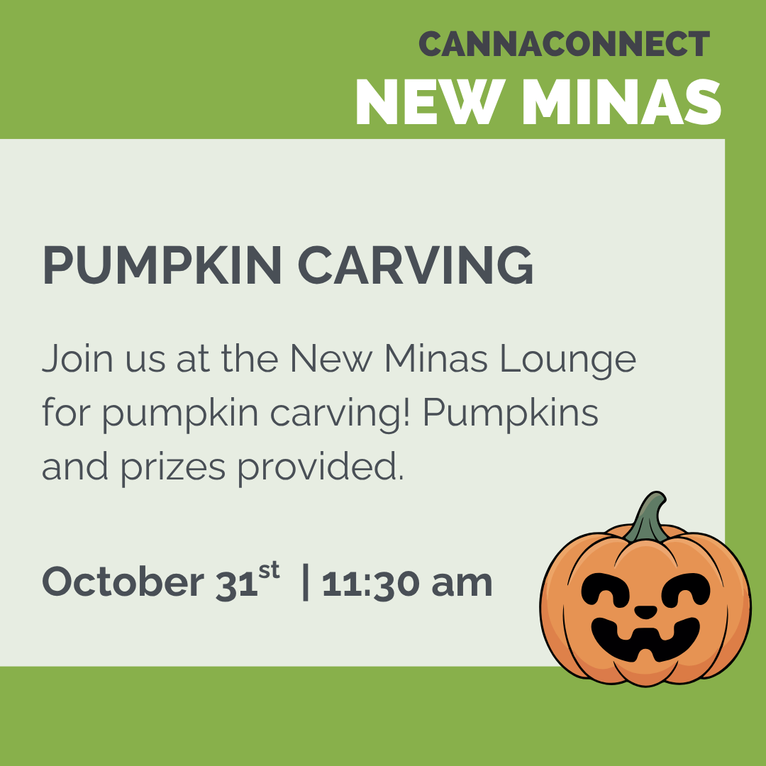 Join us at the New Minas Lounge for pumpkin carving! Pumpkins and prizes provided.