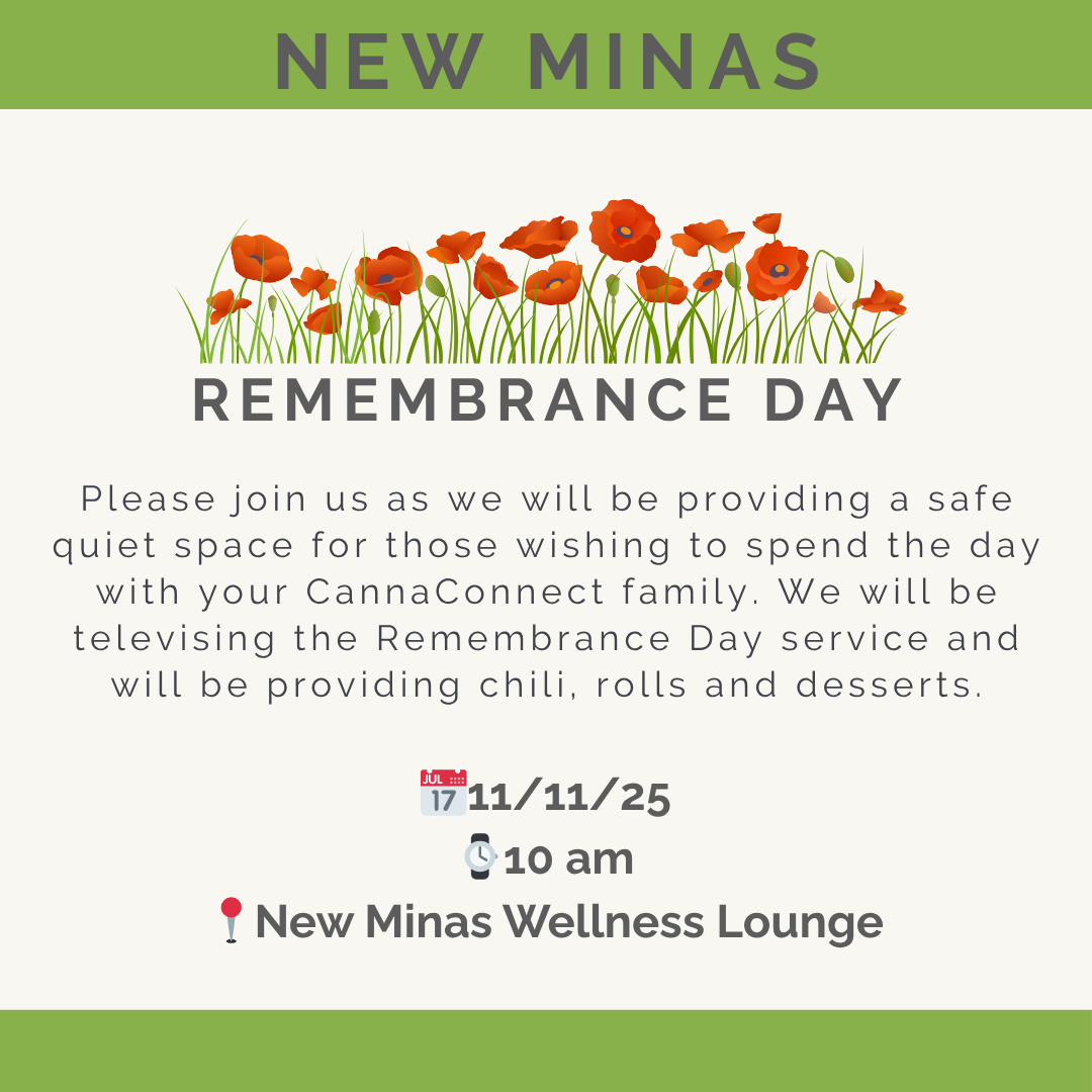 Please join us as we will be providing a safe quiet space for those wishing to spend the day with your CannaConnect family. We will be televising the Remembrance Day […]